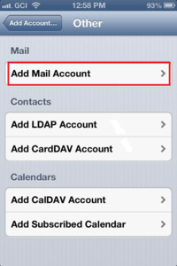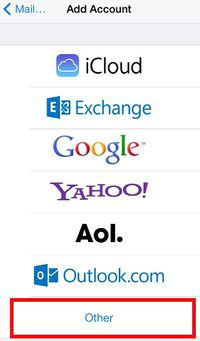- You will see a list of email accounts types, tap on "Other" at the bottom of the list.